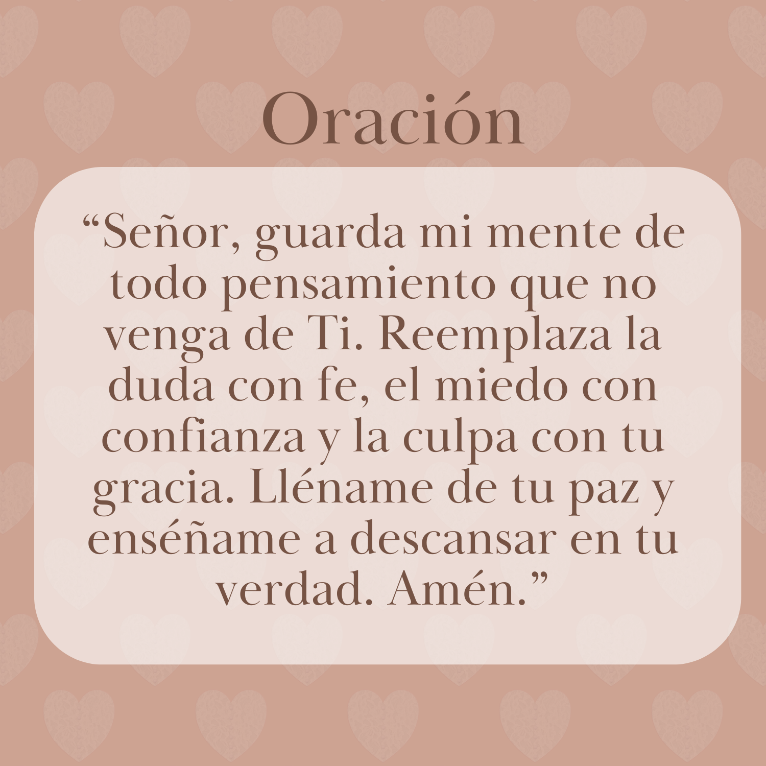 “Señor, guarda mi mente del temor. Dame pensamientos de paz, de confianza y de esperanza.”